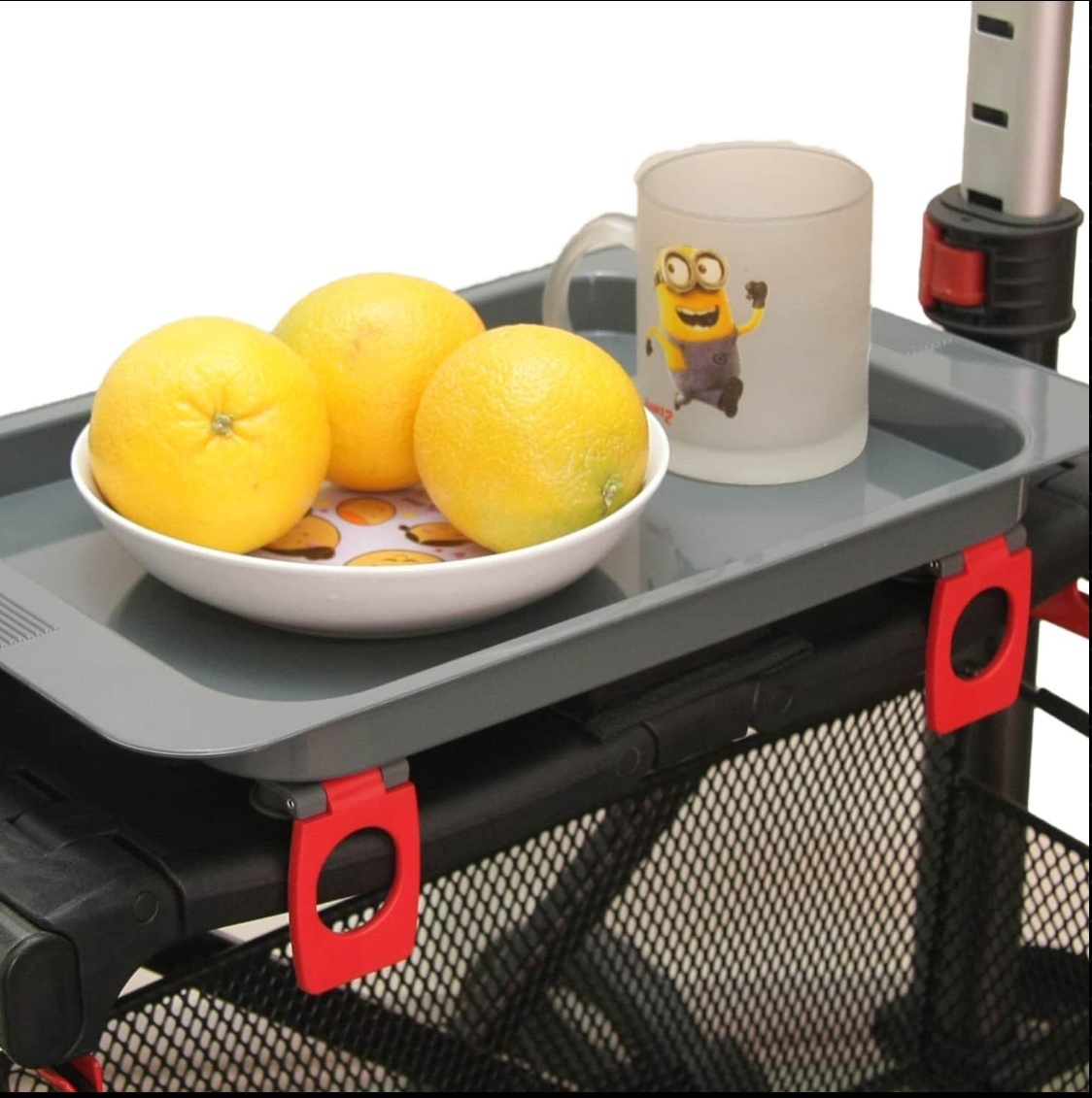 Het Rollator Dienblad is universeel toepasbaar en geschikt voor veel rollators die geen standaard dienblad als accessoire hebben in hun assortiment. Met het dienblad kunt u toch veilig uw eten en drinken vervoeren binnen huis met beide handen aan de rollator